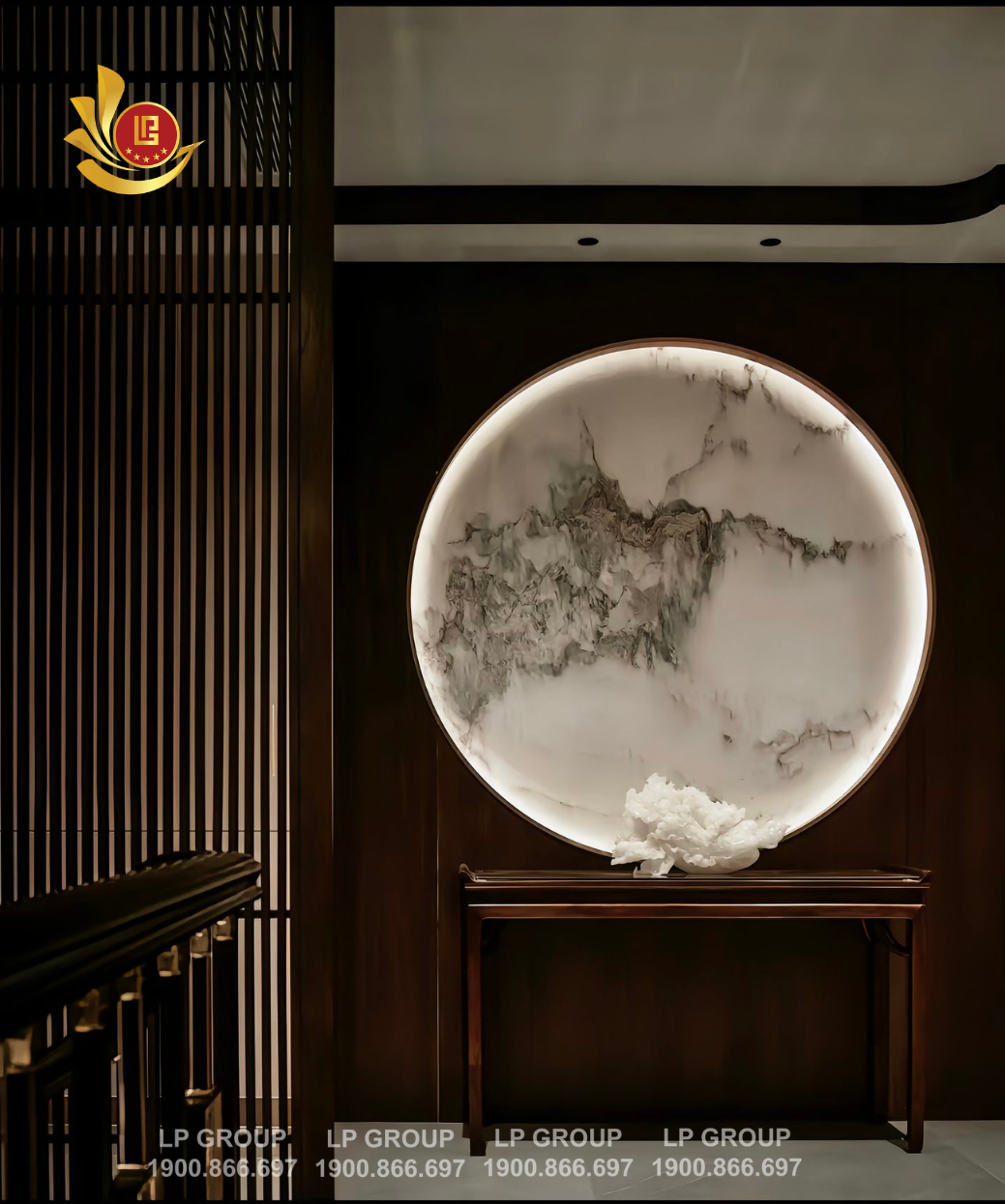 Mảng Tường Độc Đáo Với Sự Kết Hợp Giữa Gỗ Và Đá Hoa Cương